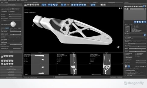 Dragonfly 3D World slouží jako software pro CT analýzu s funkcemi segmentace, analýzy defektů a vizualizace v jedné platformě. Poskytuje komerčně podporovaný Deep Learning engine, který umožňuje trénovat a spouštět vlastní sítě pro zpracování obrazu a jeho analýzu.